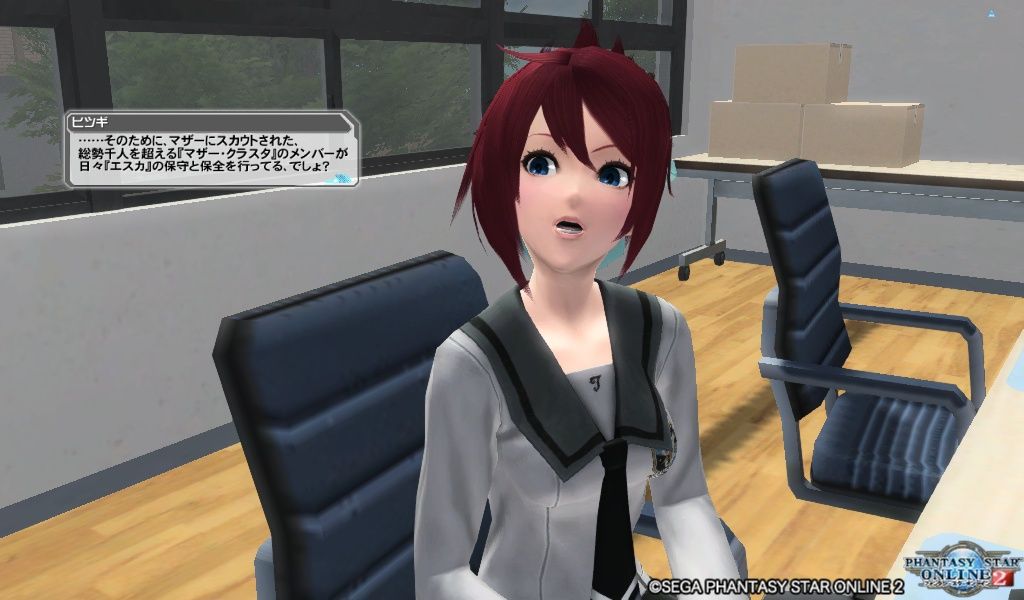 マザーとやらにスカウトされたメンバーがエスカの保守や保全を行っていて、標準インストールされてるPSO2にもバグが混ざってるのでそっちも調査してるそうです。