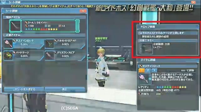 シートを埋めたり強化に掛かる手間の割に微妙なレボルシオですが、SHアドバンスのリスク10以上のエネミーがドロップするらしいです。ただし現在何故かレコードには載ってないのでどれぐらいドロップするかは知らない。