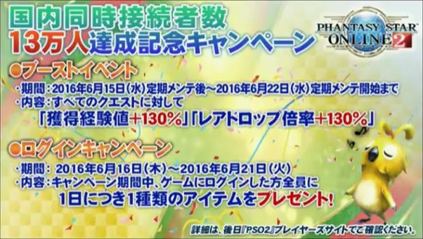 同時接続11万と12万の時のキャンペーンは既に発表されてましたが、更にその記録を更新して13万人になってたそうなのでまたキャンペーンをやります。