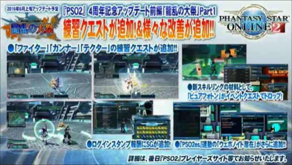 Fi,Gu,Teの練習クエストが追加、ログインスタンプの旧式武器の補助アイテムや大輝石などがSGに変更、新スキルリングの材料としてピュアフォトン、そしてウェポノイド潜在が更に追加されます。
