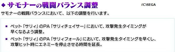 また、サリィフォールも発生タイミングが早くなりヒット時エネミーを停止させる時間を延長すると書いてあるので、今よりは使えるようになるでしょう。