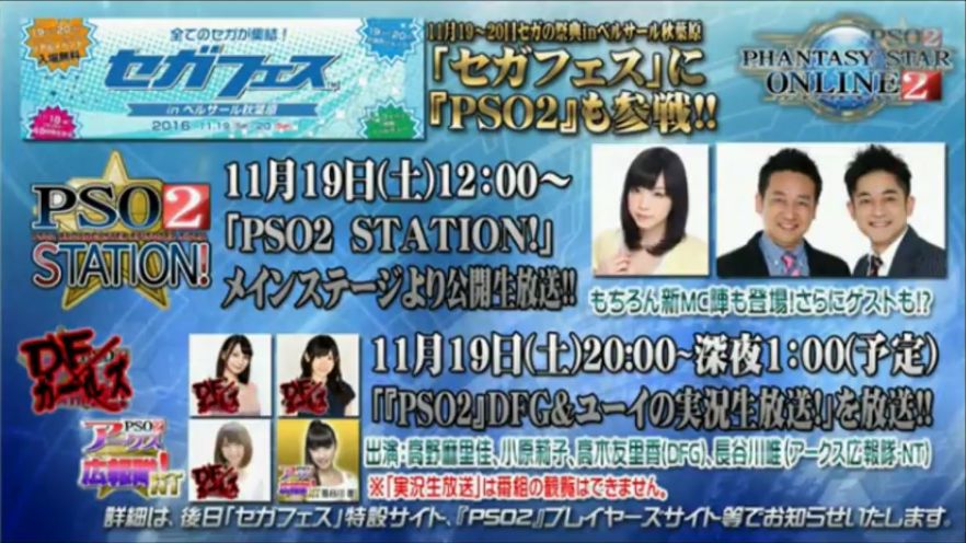48時間連続生放送をやるというセガフェスでもPSO2 STATION!をやるそうです。