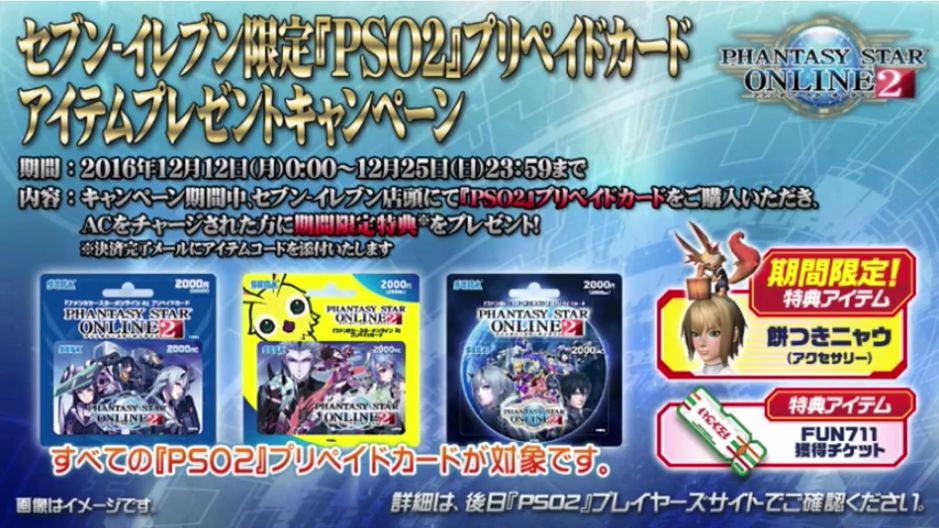 PSO2プリペイドカードを買ってACをチャージすると期間限定でアイテムが貰えます。