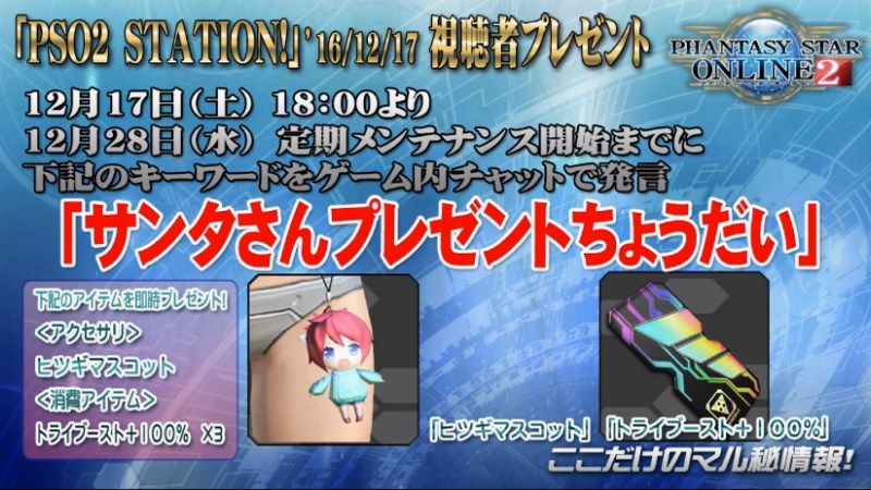 今回のゲーム内キーワードは「サンタさんプレゼントちょうだい」です。