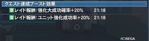 とりあえずマザー緊急に参加してきたんですが、そういえばレイドブーストは何だと思い見てみると強化大成功確率とユニット強化成功率が+20%されていました。