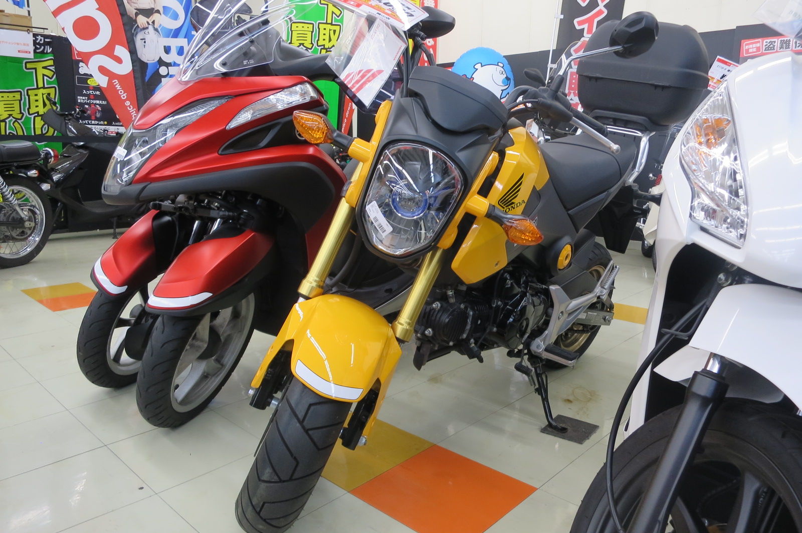 HONDA「グロム125」。取り回しが楽そうで、乗車姿勢もナチュラル。街乗りも遠出も、オールマイティにこなしてくれそうです。かっこいいし。