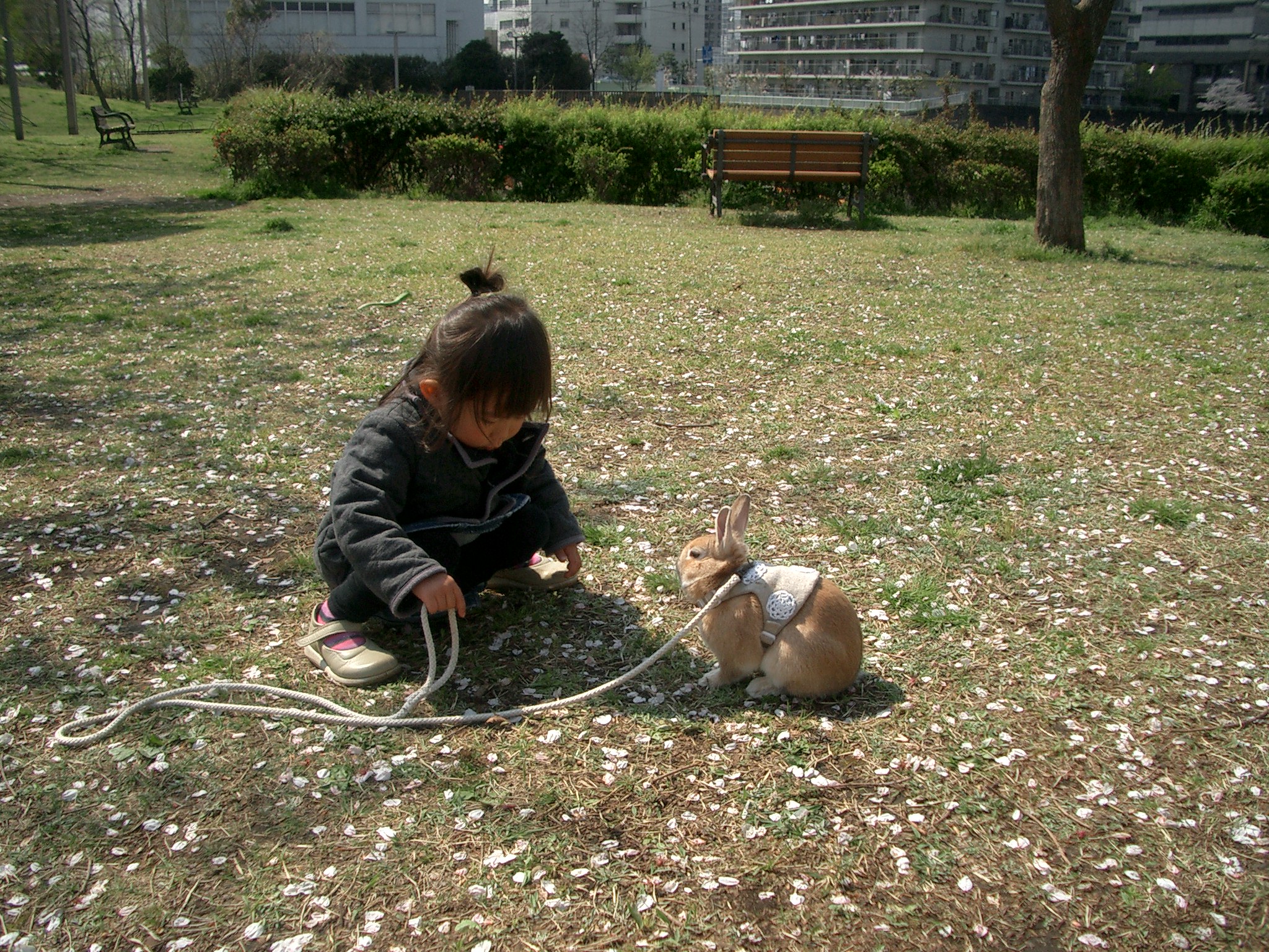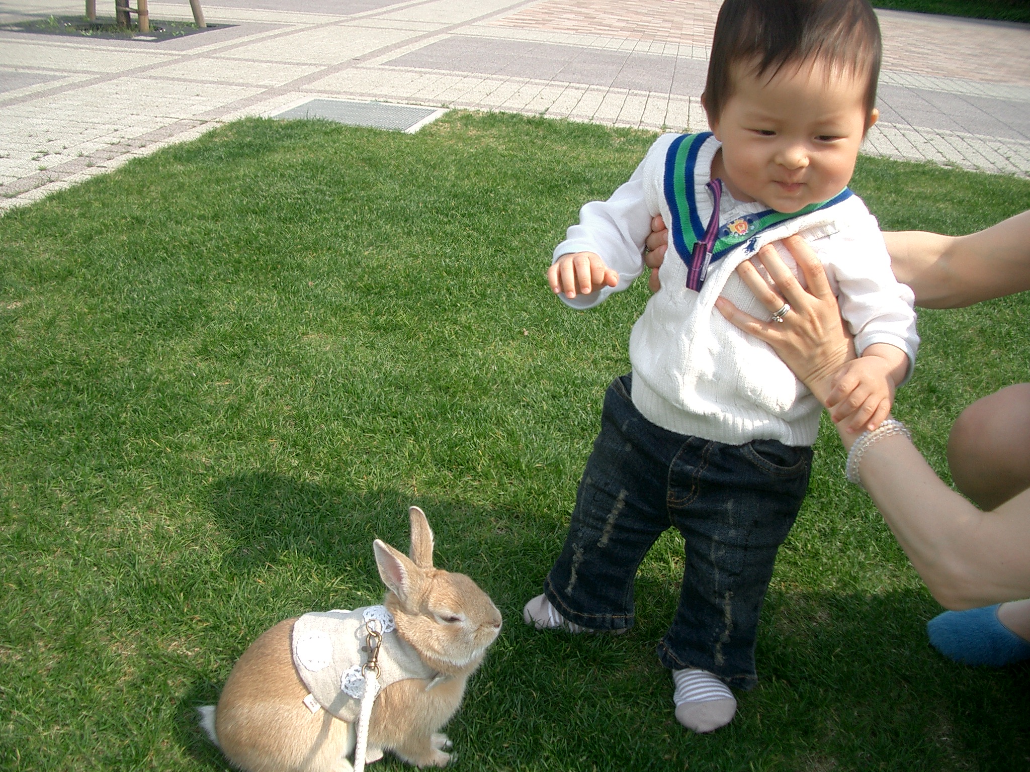 これは可愛い場面ですね〜やっぱりうさぎさんと会うのは嬉しいのでしょう。