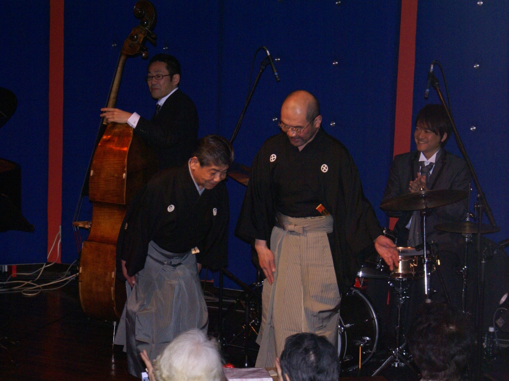 どこかいつもと様子が違うのは、ピアノ前の嶋津健一さんが紋付袴姿
