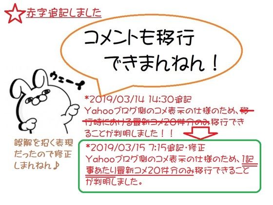 Yahooブログ側のコメント表示の仕様のため、移行時における最新コメ20件分のみ移行できることが判明しました。