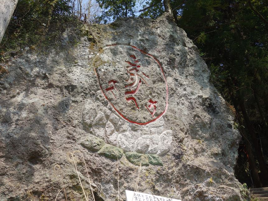 「ア」「ウン」の岩に挟まれた階段を上がっていくと、「弘法の滝」・・・
