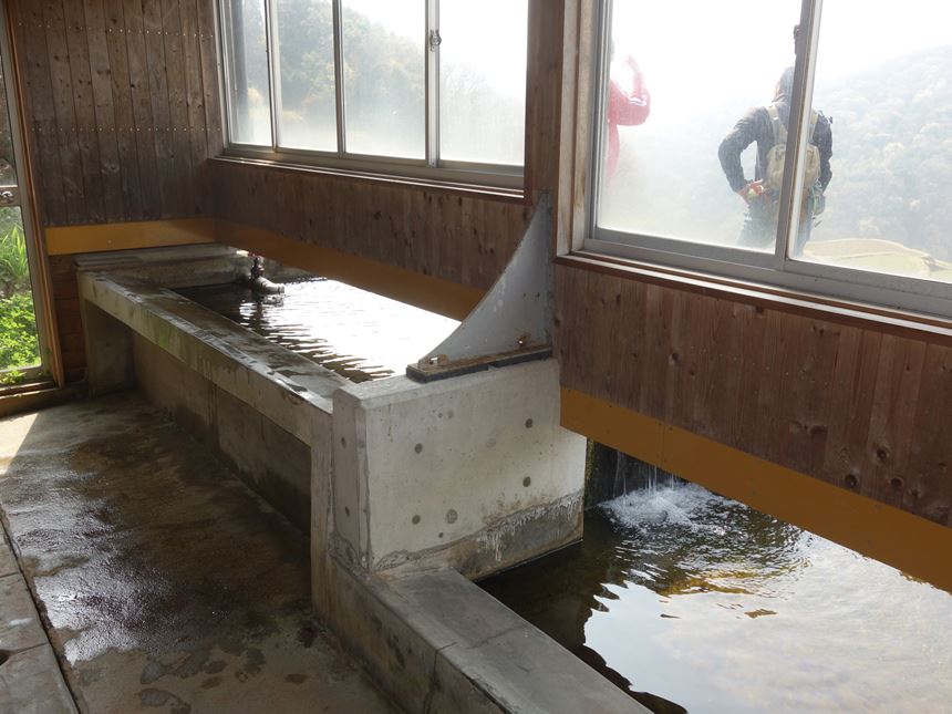 地元の人が野菜やら、衣服を洗うのに、日照りでも枯れない「湯船の水」が流れているこの共同洗い場を利用されるそうです。