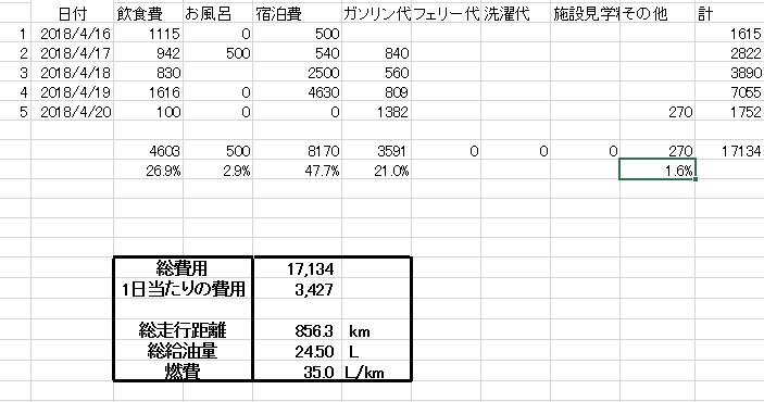 5.フェリー代 0円 ( 0%)