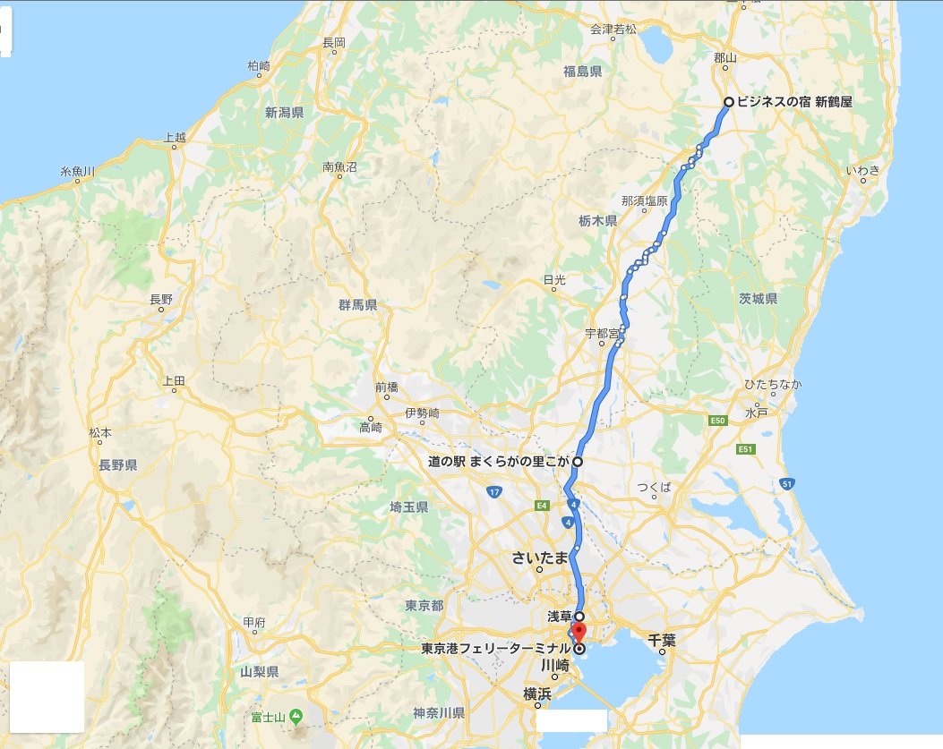 福島県須賀川から東京港を目指し、ひたすら国道4号線を南下。
