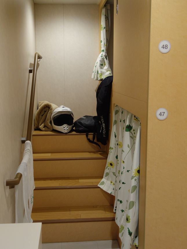 2階に人がいなかったので、階段に荷物を置かしてもらいました