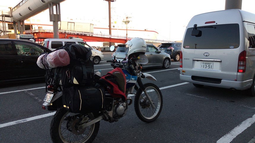 車のあとからバイクも乗船。