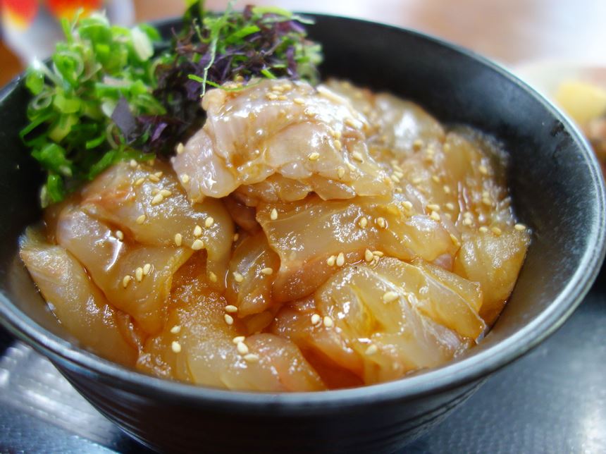 青森県西津軽郡鰺ヶ沢町「ドライブイン汐風」さんのひらめのヅケ丼