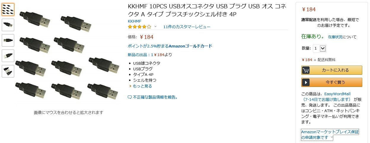USB Aタイプコネクタ(雄)