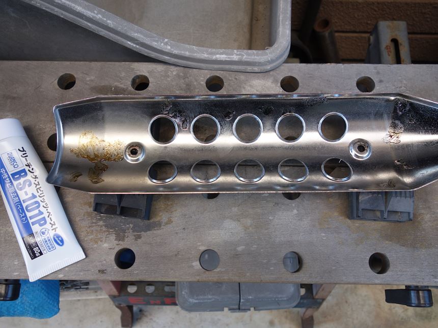 マフラーの再塗装するためにはずしていたサイレンサーカバー。その裏側。