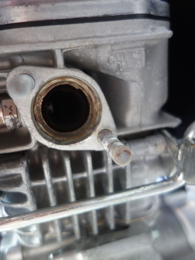 マフラーを取り付ける前に、古いガスケットをはがさんとあきまへん