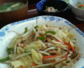 相棒とそれぞれ頼んだのが日替わり当店お勧め定食(今回はさんまの煮付け)(600円)(画像上段中央)と野菜炒め定食(700円)(画像上段右)です