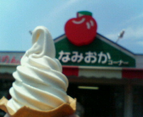 爽やかな酸味がほのかにかおるリンゴソフト(200円)が食べられるのは道の駅「なみおか」でございます