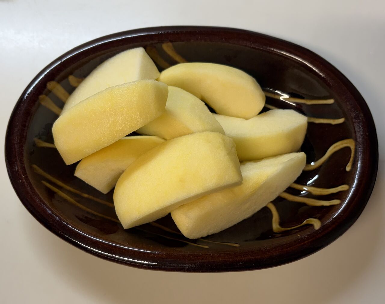 食事が終わると長男孫が食器を下げてくれ次男孫が手伝いに来てくれたのでりんごを剥いてもらいました。包丁は難しいと思いピラーで剥いてペティナイフで芯を取り、塩水に通してキッチンペーパーで水気を取るまでを教えました。