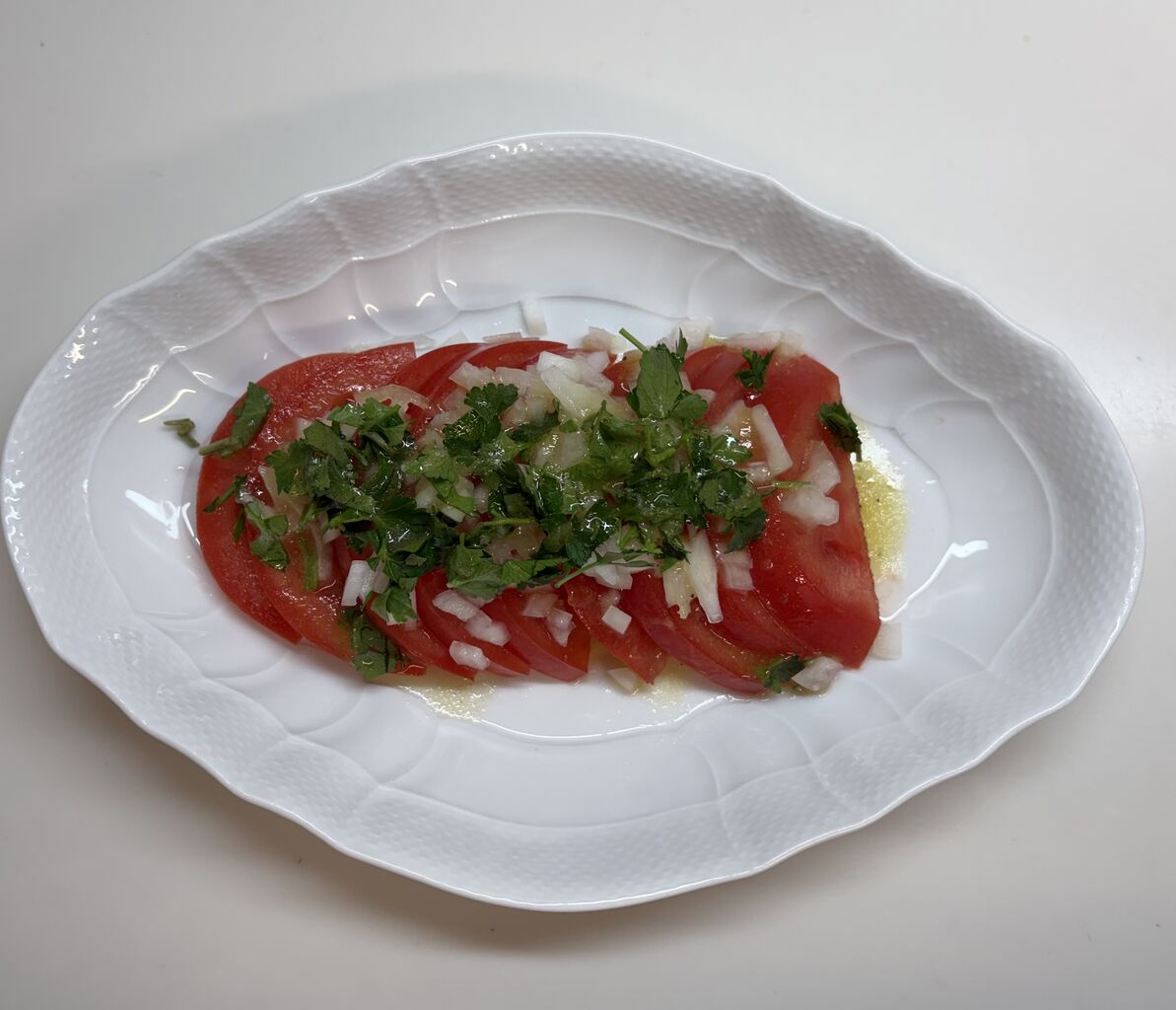 他は娘と私用にトマトサラダ、イタリアンパセリ、玉ねぎ、ドレッシング