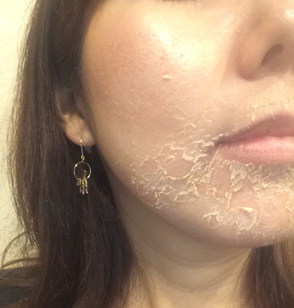 朝から順調に剥けており、赤味がでてきました。滲みるので半泣きで朝のお手入れ終了後、お化粧。