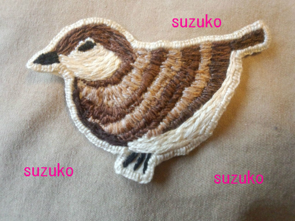 スズメちゃんはペットを飼っていない我が家の都合のよいペットだ。時々やばそうなパンを食べてもらう。それで、「今日はないの?」とリビングの窓の向こうから挨拶に来てくれるけど、車にお土産を投下してくれるのだけは困る。このかわいい生き物のワッペンを刺繍して、帯に仕立て中だ。写真のすずこは帯の正面に位置する予定。明日できるとこまで仕上げるつもりだけど早くしないと来月から仕事だ。続きを読む