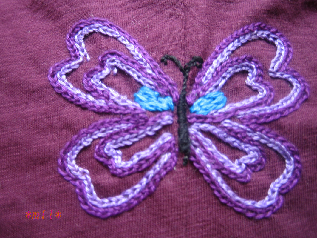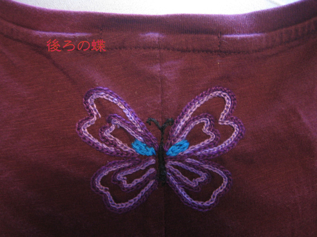 セールになっていた○ニクロのTシャツに刺繍してみた。色は先生に相談。イメージは地味派手。地味そうで派手。着物の紋のイメージ。ゴルフ練習用ポロシャツすべてにこの刺繍をしようかなと考えている。まだ帯の刺繍も途中。クロスステッチもまだ。なのにエプロンに刺繍中。いろいろ習えてたのしい。ほんとに飽きないわ。追記:写真の蝶は、帯の刺繍と同じく和紙に絵をうつして、それを縫いつけてから刺繍しています。下絵をチャコで写すにはTシャツは不安定過ぎる素材ですので仕方ないです。続きを読む