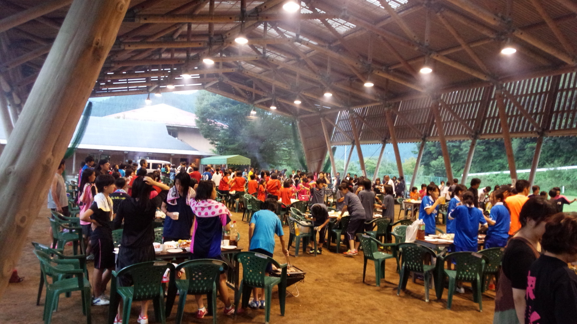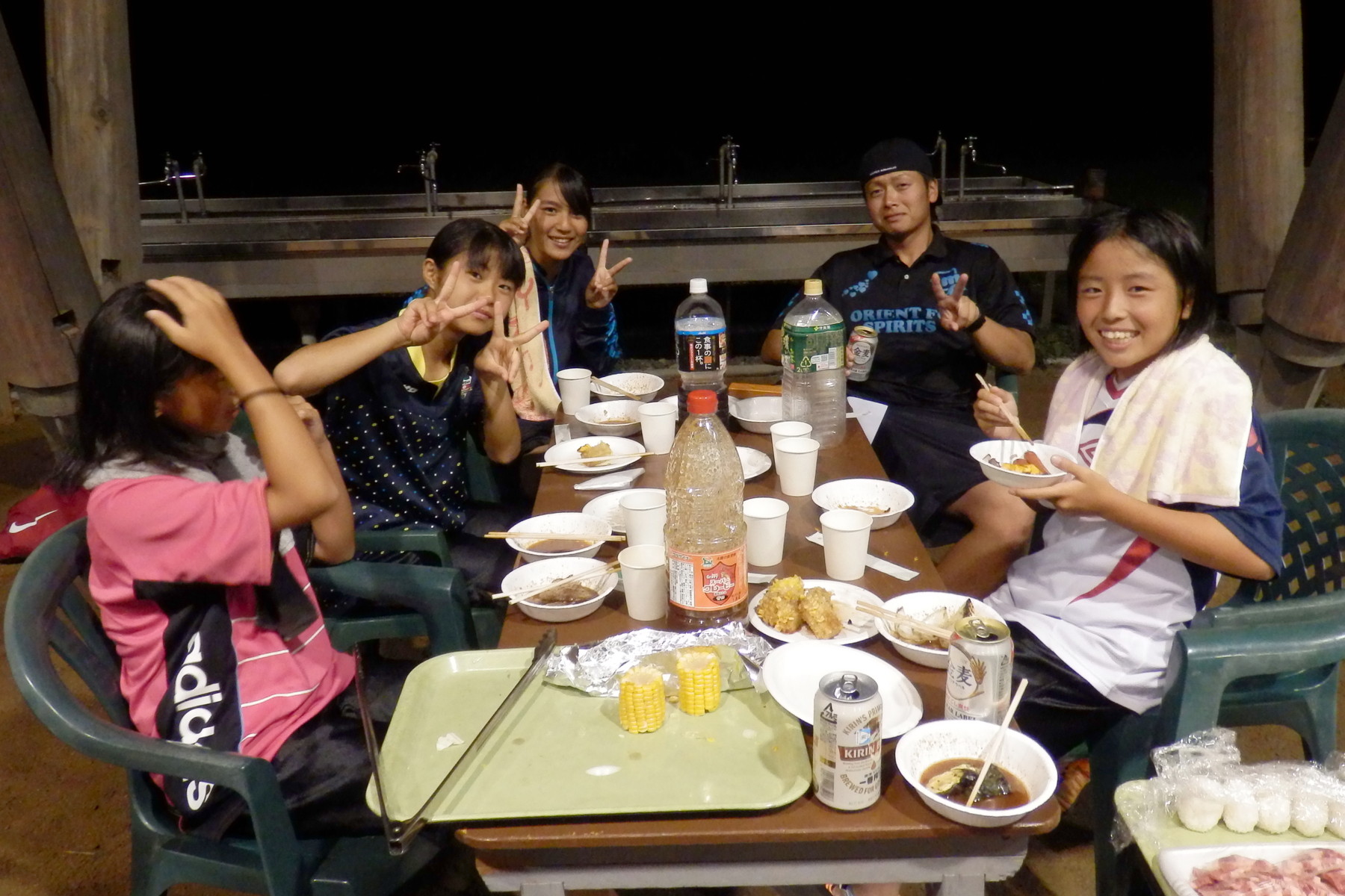 夕食はバーベキューでした、これだけの女子選手と指導者が集まれば壮観です。