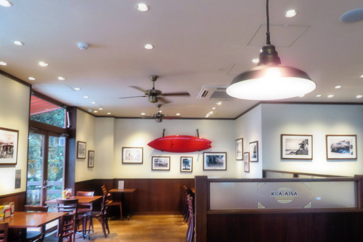 人気のハワイアンハンバーガーの店。土日になれば少しは賑わうようになってきたみたいだけど。平日はまだこんな。店内よりテラス席のほうが密だった。