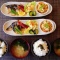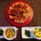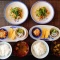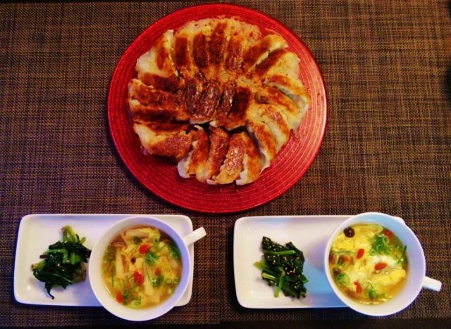 焼き餃子・たまごと茸の中華スープz(たまご・しめじ・クコの実・青葱の小口切り)・ほうれん草のナムル