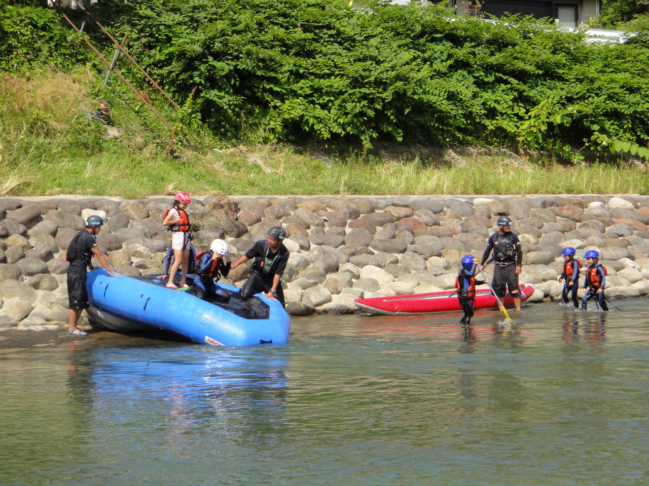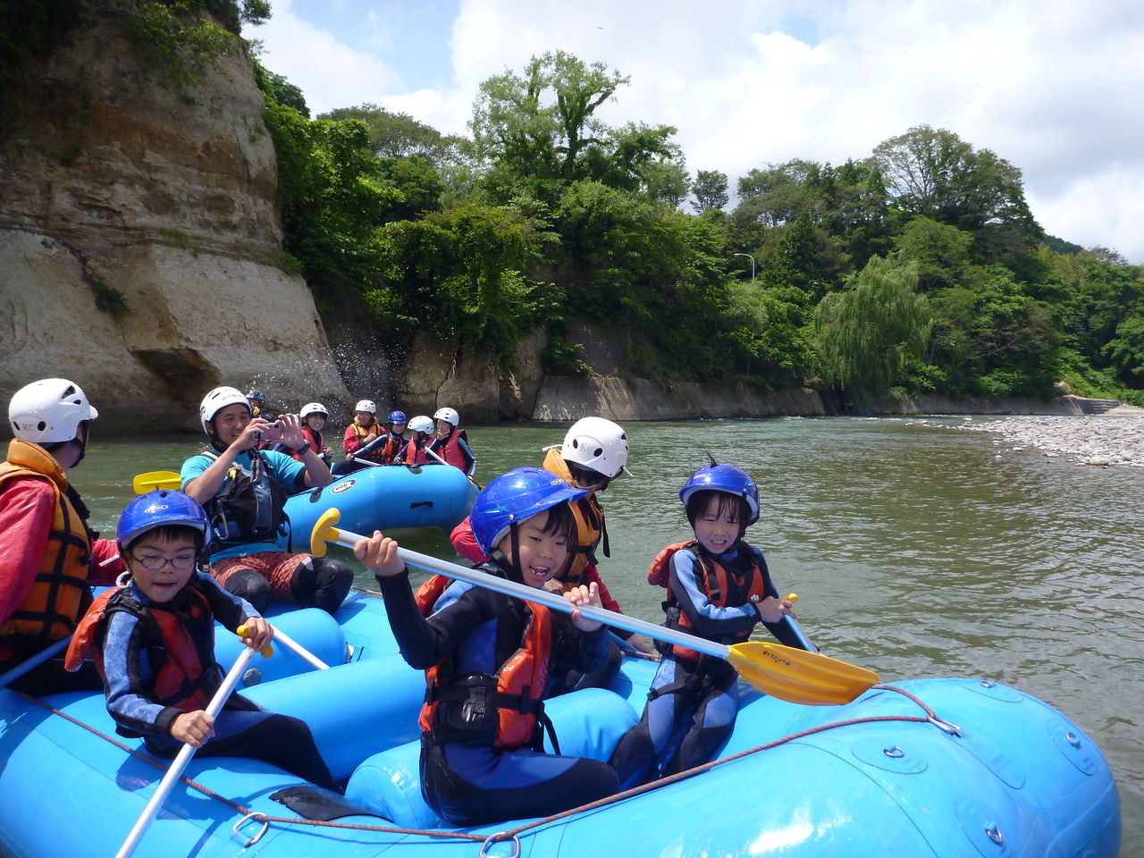 ラフティングボートでの滑り台などまたみんなで一緒に広瀬川で遊びました。