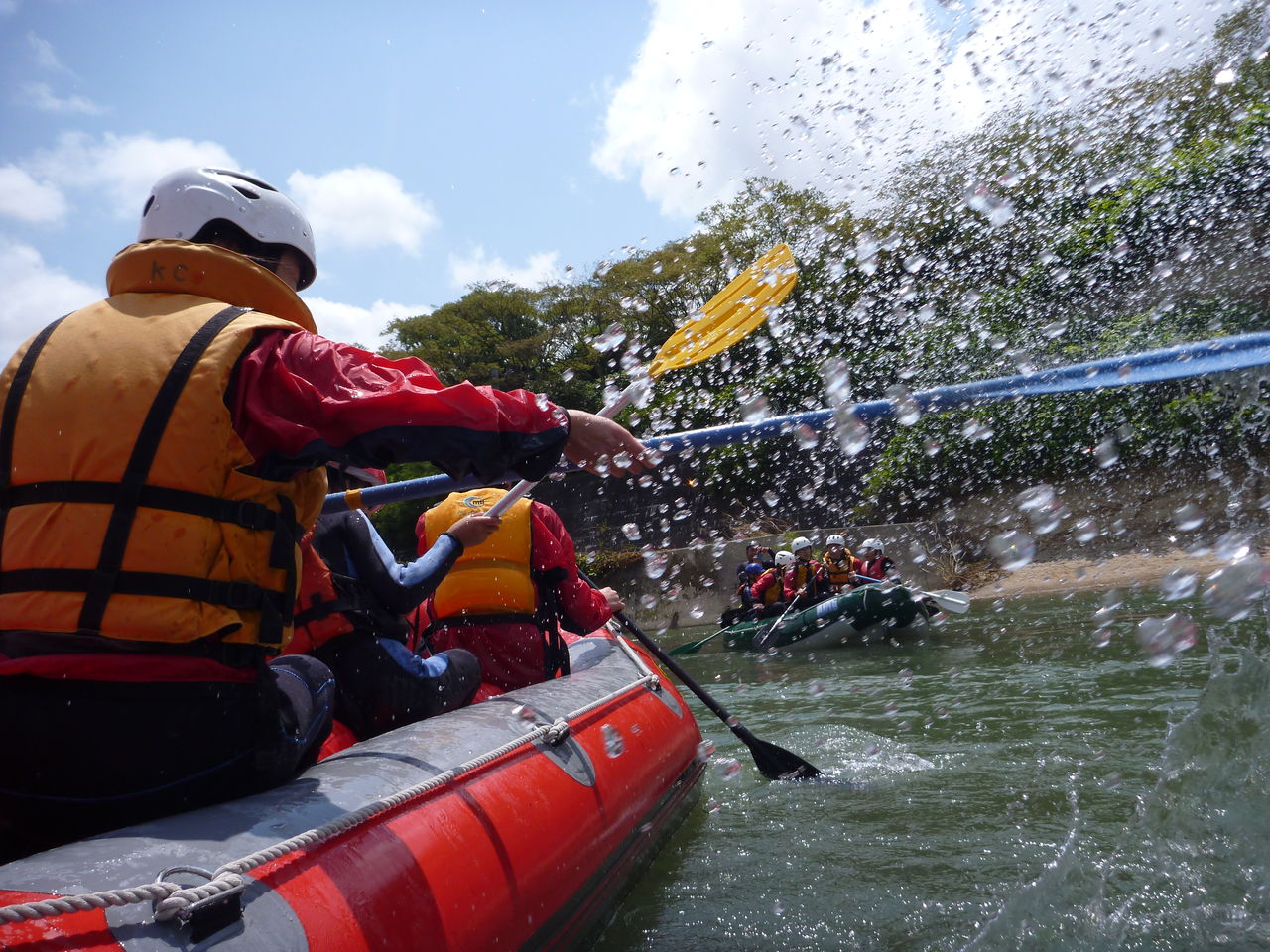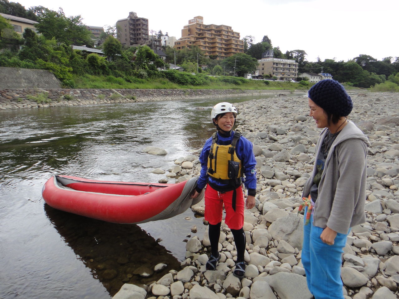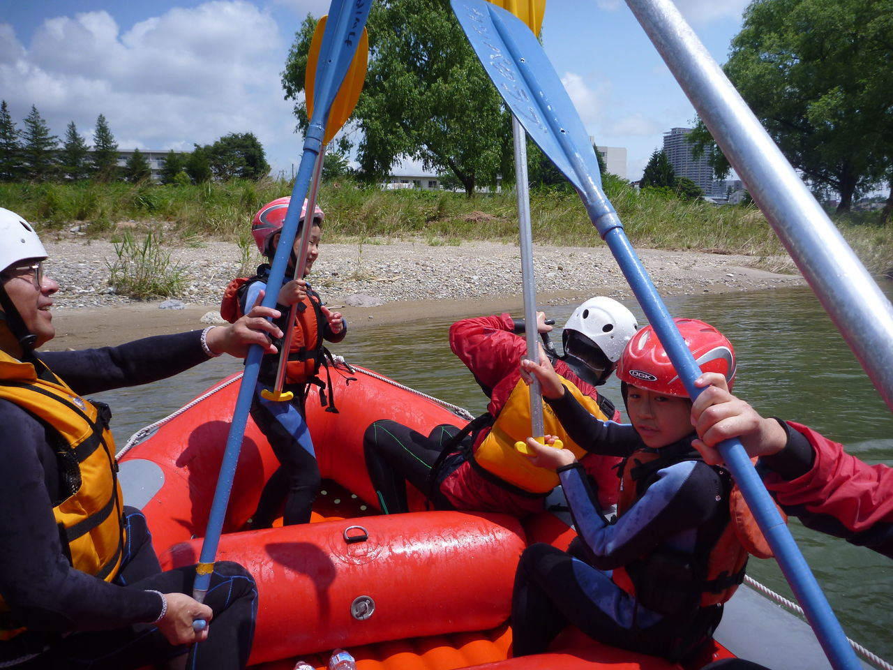 さあ、ラフティングに出発!普段見慣れた街並みは、川からみたらどんな風景に見えるのでしょうか?