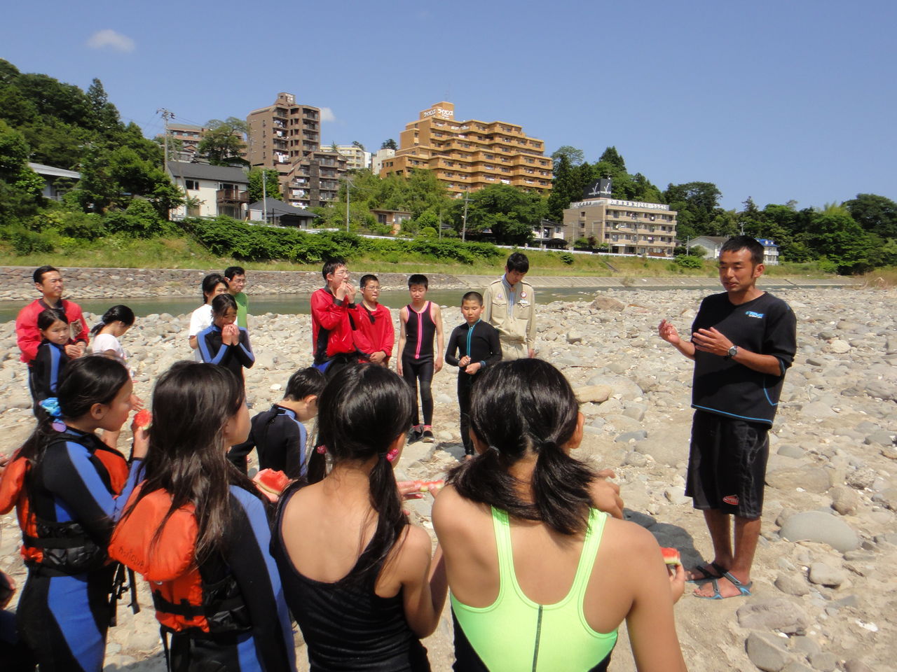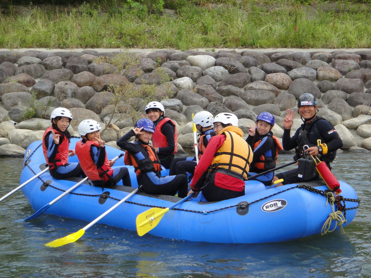 「ラフティング楽しかったですか~?これからもみなさんアウトドアでの体験をとおして助け合うということ学んで下さい!」