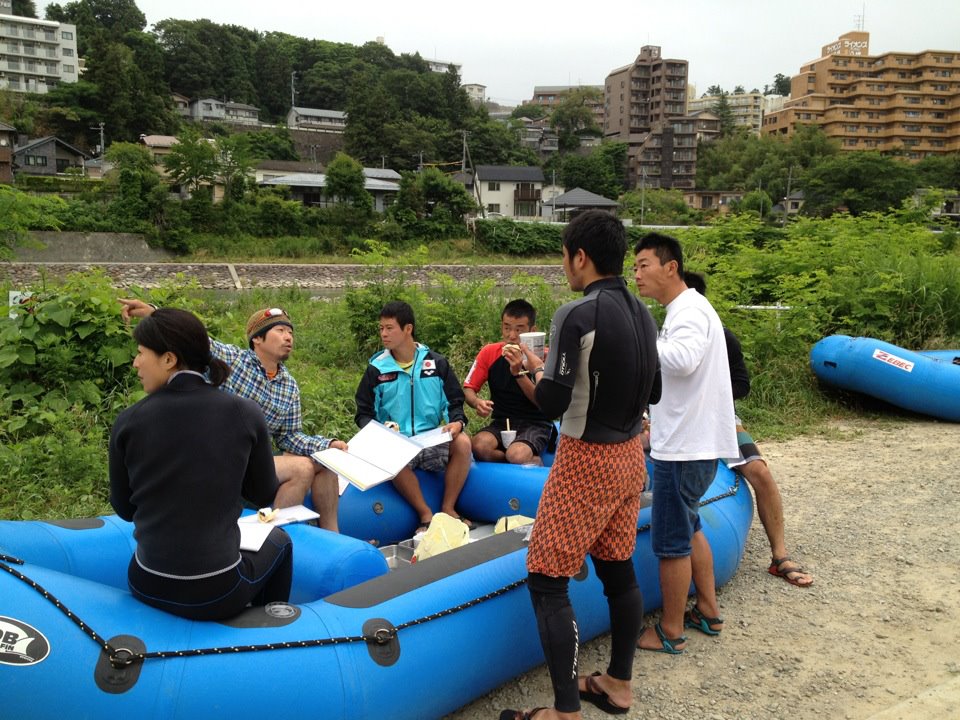 仙台出身の畠山くんがセーフティトーク。6歳の子にはちょっと難しそうですがラフティングをする上での安全についての説明をしっかり聞いていました。
