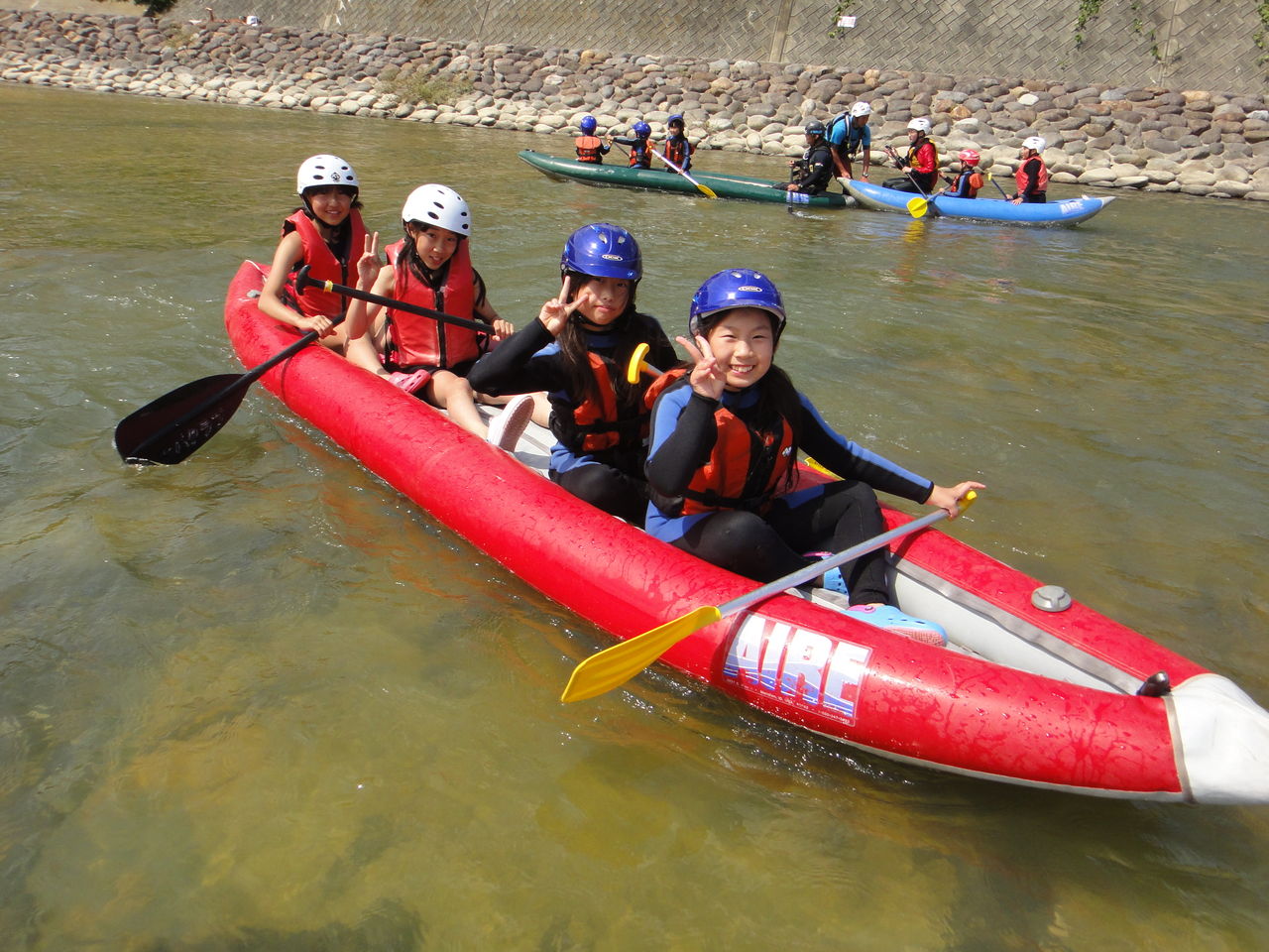 おなかいっぱい食べた後はインフレータブルカヌー体験。