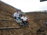 私たちは切り落とした茅を片付けたり、足場の掃除などなどのお手伝い。実は特別に特別に屋根葺きバサミで茅を少しだけ刈らせて頂きました。