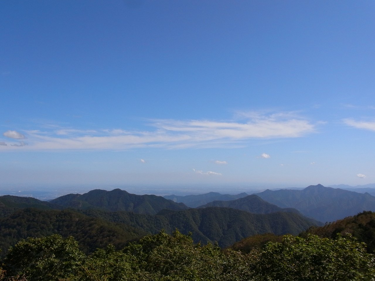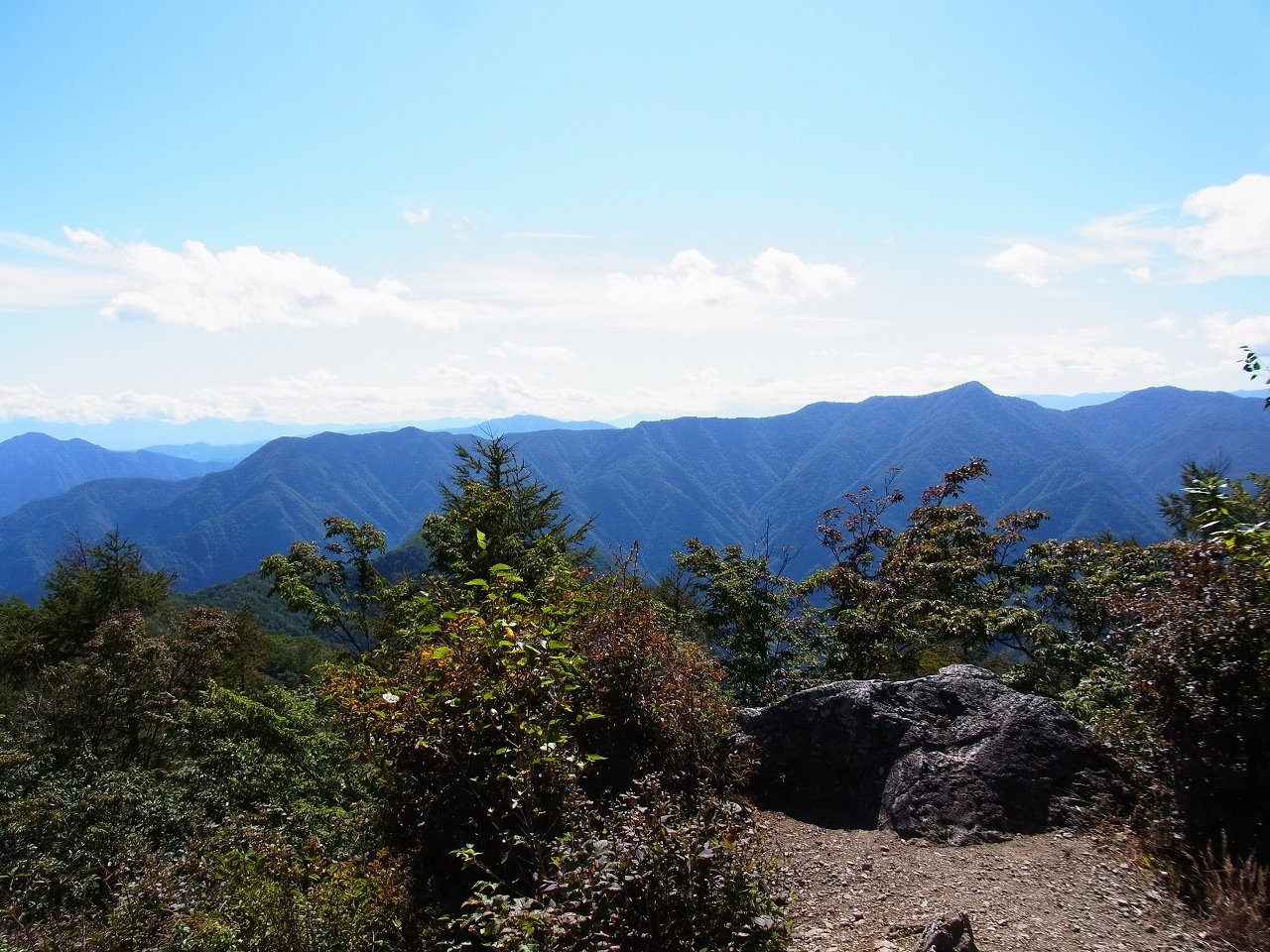 何もすることがないので尾根伝いに長沢背稜縦走路へ復帰し、ハナド岩まで来ました。正面に石尾根縦走路の鷹ノ巣山〜雲取山がよく見えます。長沢背稜はここと天目山くらいしかまともな眺望がないです。ここから眺めるの紅葉も悪くないのですが時季はまだ先ですね。