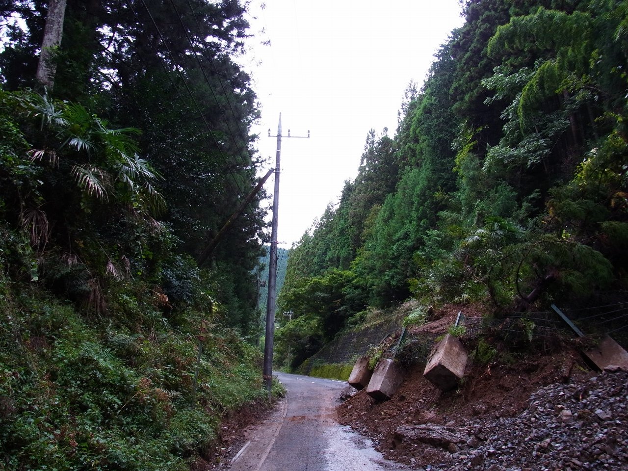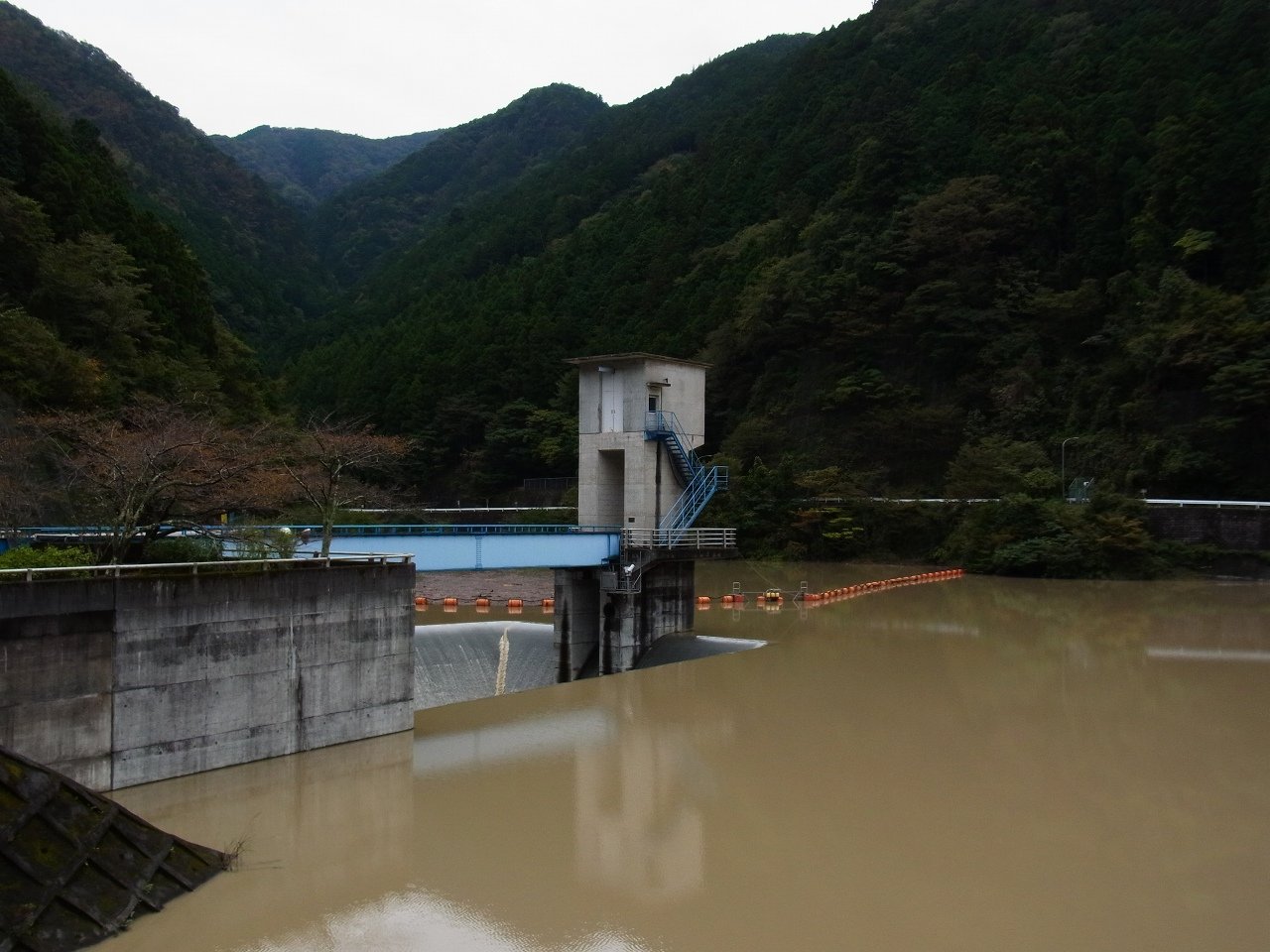 有間ダムへ上がっていくとがけ崩れ現場が・・・ここが通れないので車では直接行くことはできません。ダムの水位も高く茶色の泥水満水で、こんなに水が多いのを見たのは久しぶりの気がします。