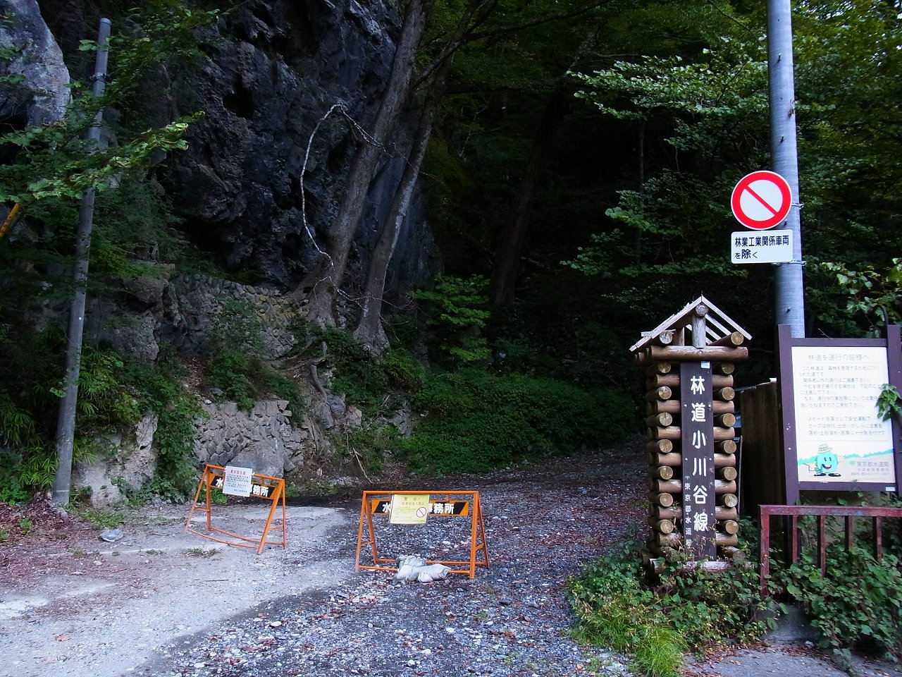 鍾乳洞先から林道小川谷線へ侵入します。閉鎖されているゲートに貼ってある案内には「三又経由では行けないが、手前の七跳尾根ならば長沢背稜へ行ける」と書いてある(書いてありません)ので、問題ありませんね。ここからどこにでもある何の変哲もない林道歩き6kmが始まる。