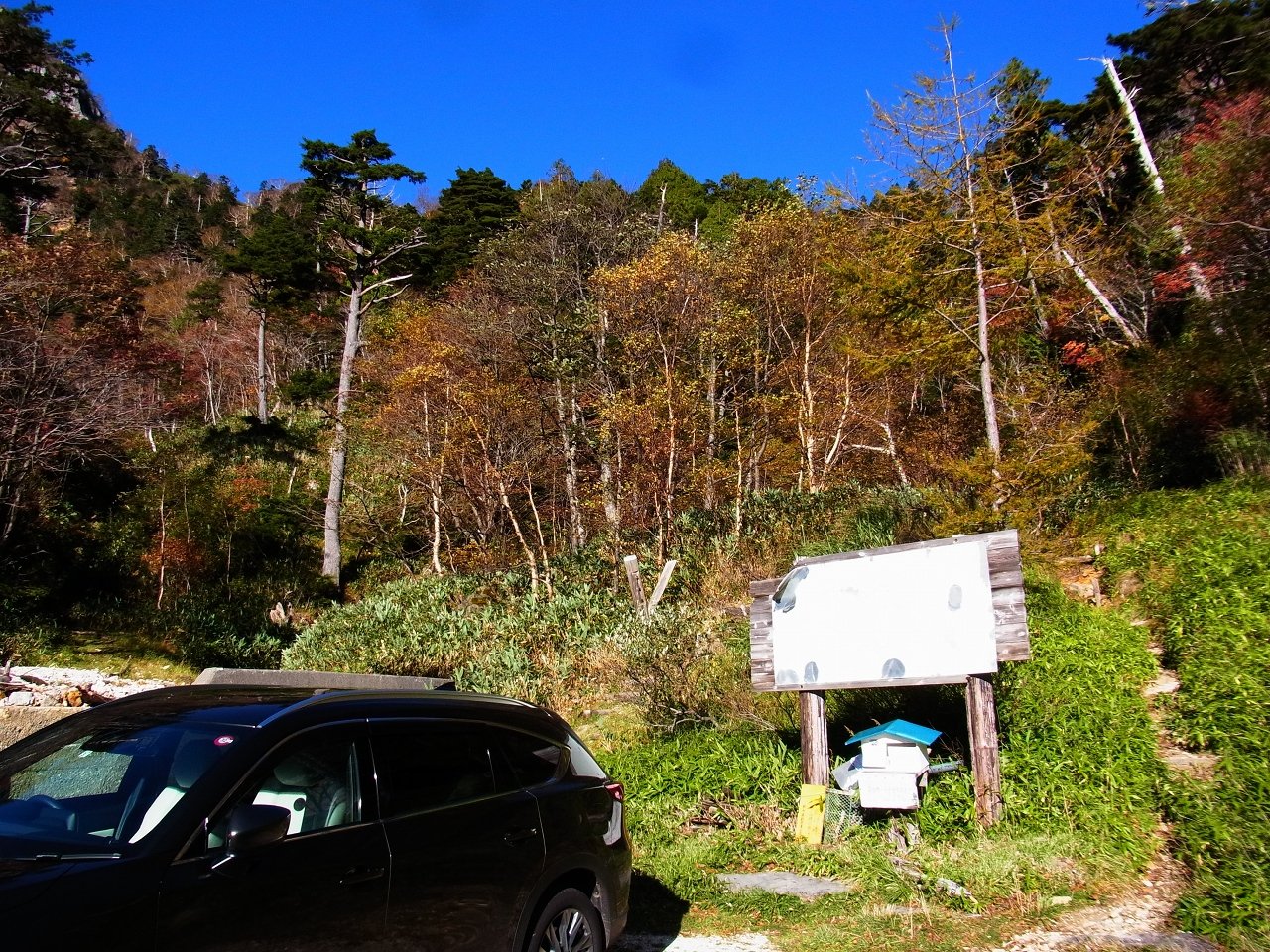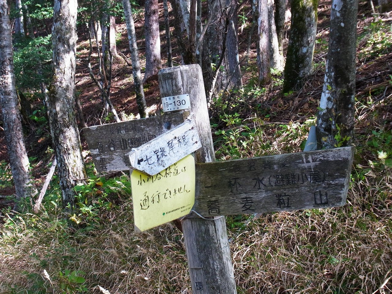 いい加減飽きて泣きが入ってきたころ、三又への分岐となる広場に到着。10年近く前に今回のコースのほぼ逆回りは来たことがあって、この広場の隅で林道歩きに備えて、登山靴からスニーカーに履き替えたのを思い出した。あの時はICB-770にアルミ板や三脚も担いで、天目山から酉谷山まで行って三又からここに下りて日原まで周回したんだ。記事を読み返すと昔は元気だったな以外に感想がないです。
