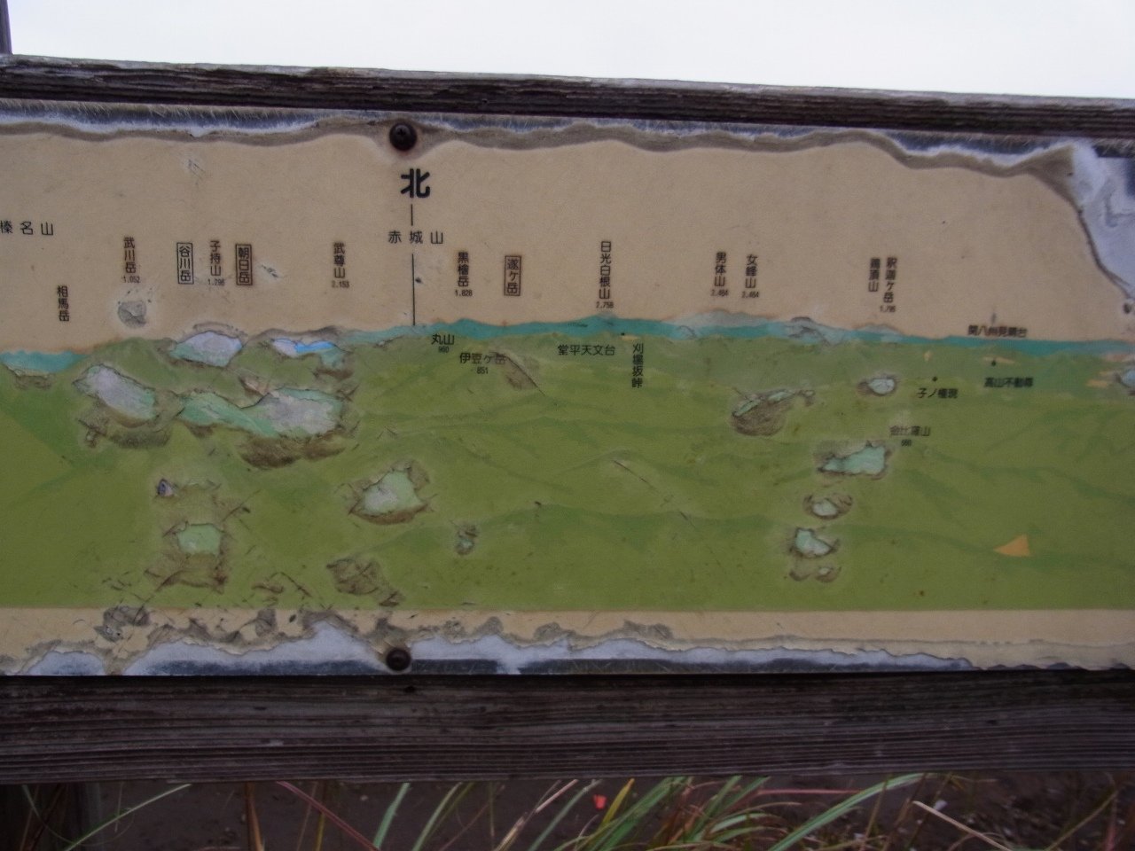 ここは標高1,000mにも満たないが、北側眺望が秀逸なんですよ〜!と眺めますが、まるでダメ・・・見えない・・・展望看板で勘弁します。あっここから日光白根山が見えるんですね。ほとんど何も見えないけど、まあ雨に降られないだけマシですね。