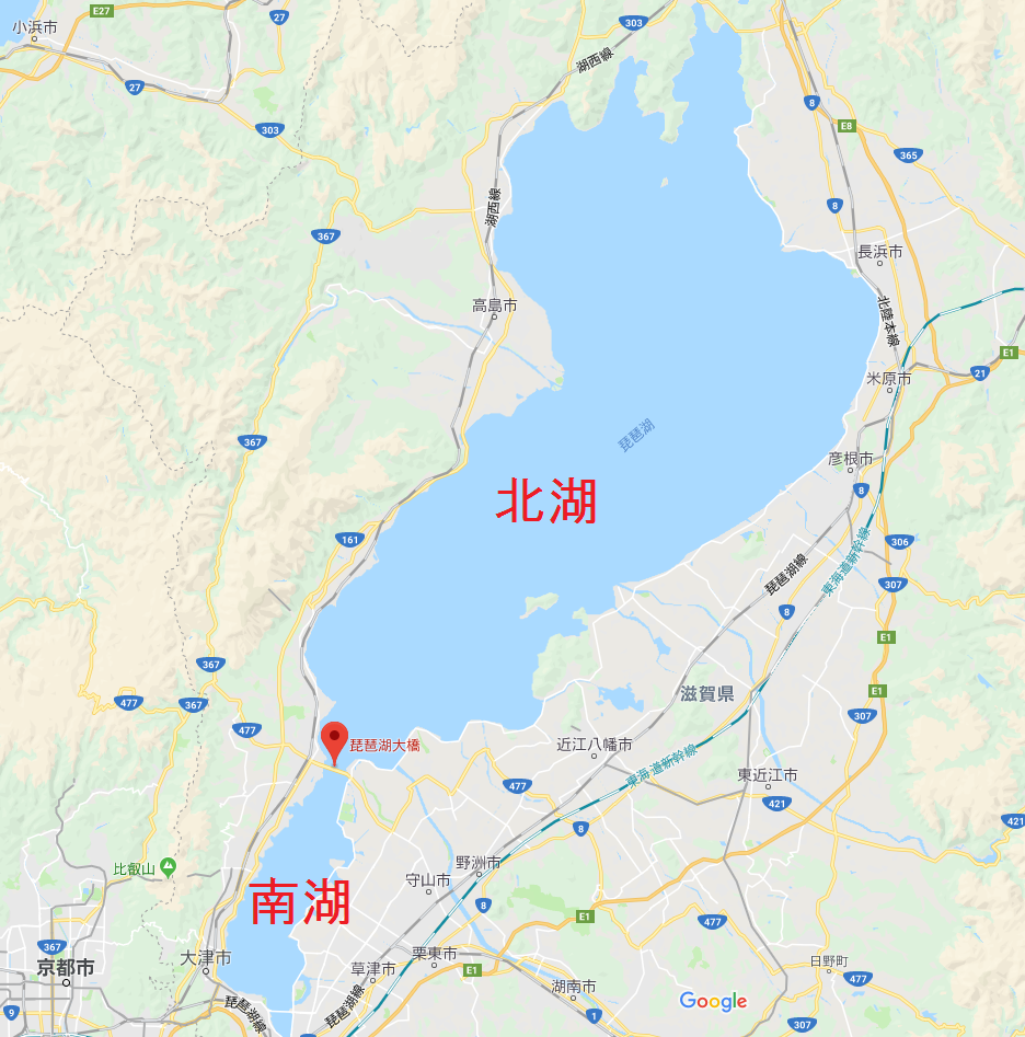 琵琶湖は 琵琶湖大橋 を境に、北湖(ほっこ)と南湖(なんこ)に分けられます。