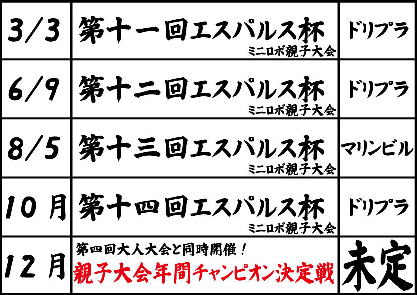 また2月10日にはる・く・るで小学校対抗のミニロボ大会も開催する予定です!こちらは貸し出しミニロボでの試合ですので、是非友達を誘ってご参加ください!!