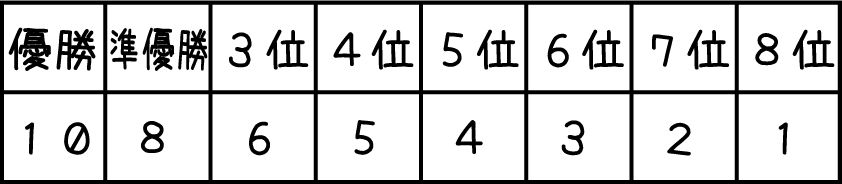 A級トーナメントの8位までポイントが貰えて、年4回の大会で合計ポイントの高いチームがチャンピオン決定戦にでれるよ!!と覚えてもらえればOKです!!