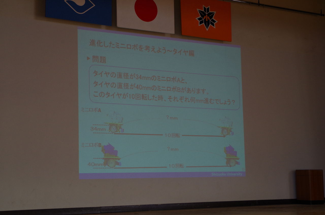 ★タイヤの大きさの違うミニロボを使って、実験です。