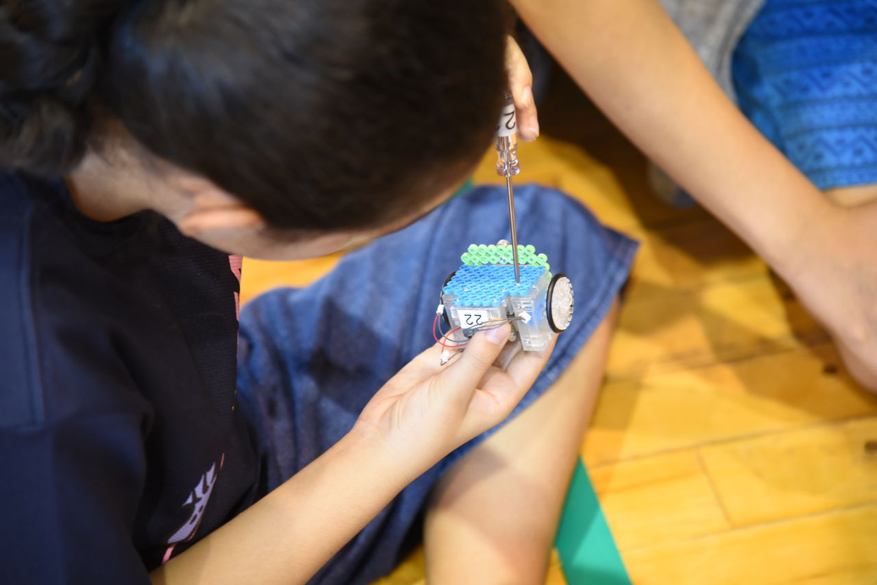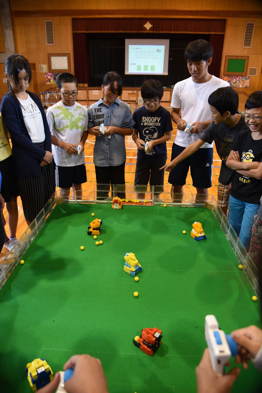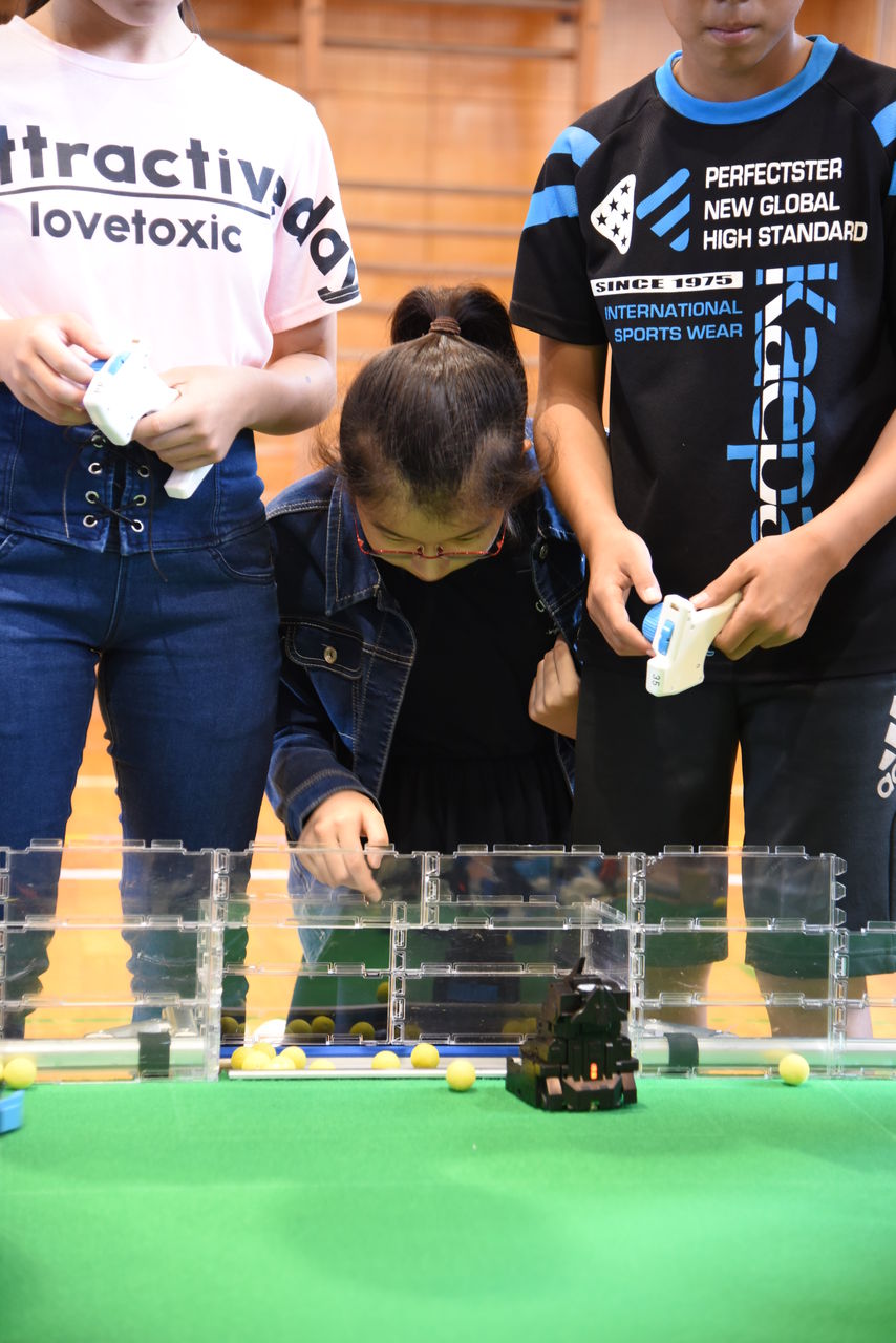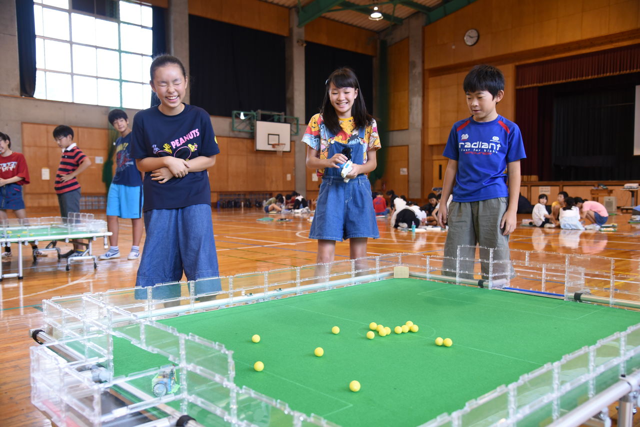 ★コートの中がミニロボとボールで溢れています。子供達も周りを囲んで大賑わい!