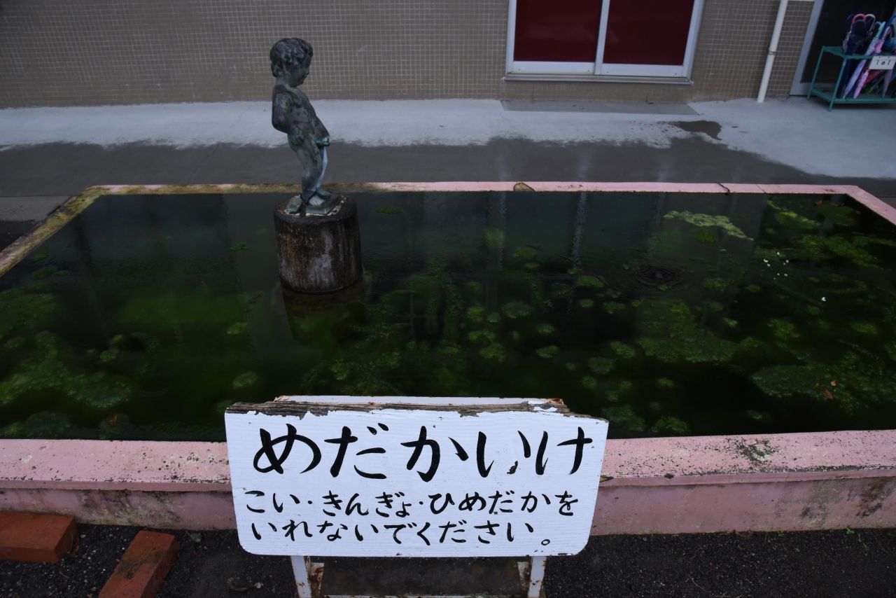 ★昇降口の横に「めだかいけ」発見(@_@。めだか・・・いるかな?